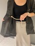 夏の羽織に最適なリネンのブルゾンです◎ シンプルなTシャツやタンクトップにさらっと羽織るだけで、 決まります! シャツよりもきちんと見えて、ジャケットよりもラフに着ていただけるChaosの夏のおすすめブルゾンです。 前を開けて着用する時に、 ウエストのドローストリングの紐がチラッと見えるのも 私のおすすめポイントです◎ ブルゾンはブラックなので、タンクトップの色を合わせて すっきりと。 ボトムに大好評のリベールサテンスカートの新色ライトカーキを差し色にコーディネートしました。 クローゼットにない色をお持ちだとスタイリングの幅が出来て楽しいですよね!