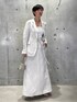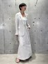 モードエレガントな印象のセットアップアイテムです♪ レーヨンリネンの織り目がとてもきれいな生地を使用しているので、雰囲気がとてもエレガントにお召しいただけます! 軽い質感ですが、シルケット加工を施しているので、 肌触りがドライ過ぎず適度に滑らかです◎ ジャケットはダブルの他のデザインと比べるとタイトでシングルなので、すっきりと合わせやすいと思います。 お仕事から休日着まで幅広くスタイリングを楽しんでいただけると思います。 スカートは 体のラインを拾わないAラインで、 モードな雰囲気でご着用いただけます。 トップスはベーシックなTシャツからニット、シャツと幅広く合わせられます♪ instagramからもおすすめをご紹介しております😊 フォローしてくださると嬉しいです☺️ ↓↓↓