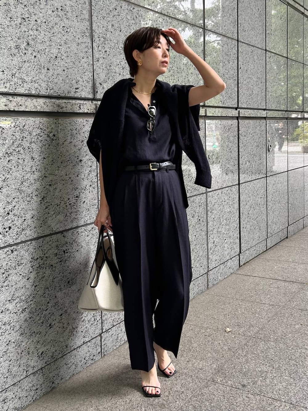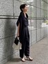 Chaosの夏の定番! デイリーユースに最適なアイアスシリーズの新色ネイビーをセットアップで着用しました。 暑い夏にも涼しく快適に過ごせる大人気シリーズです♪ 今シーズンはより体型を拾わずに綺麗に見せてくれるラインにデザインされております! トップスはスキッパーデザインで、今年らしく、 ボトムのパンツはタックがお腹周りをカバーしてくれつつ、裾に向かって少しテーピードしており、すっきりとした印象に。 今回は丈を重視して38サイズを着用しております。 生地は麻調の合成繊維を使用しているのでさらりとしていて、 ホームクリーニング後はアイロンもほぼ必要なくご着用いただけるところもご好評いただいております💡✨ instagramからもおすすめをご紹介しております😊 フォローしてくださると励みになります♡ ↓