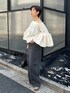 大注目のアガサチャンパカシリーズから ブラウスとズルッとしたワイドシルエットのデニムを合わせたカジュアルスタイリングのご紹介です✨ ・アガサチャンパカブラウス 前後2wayで着用可能ですが、私はやっぱりリボンは後ろにしたい派です🙌 ネックラインはオフショルにも出来ますが、 今回は控えめに片側の肩を少しだけ出すように着ました。 生地の分量をたっぷり使った袖のデザインがとても素敵で気分が上がりますよ! instagramからもおすすめおすすめアイテムをご紹介しております! フォローしてくださると励みになります😊 ↓