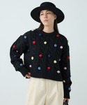カラフルなポップコーンがとても可愛いセーターです🧶 粗い原料の糸を使用しているのでかわいいだけで無く、編み目がわかるのでオーセンティックで雰囲気のある大人の遊びがあるニットです♡ ショート丈なのでバランスが取りやすいと思います💡 Chaosの完全オリジナルニットです! ボトムには張りのあるオロゴントラウザーを合わせてバランスをとりました。