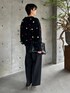 カラフルなポップコーンがとても可愛いセーターです🧶 粗い原料の糸を使用しているのでかわいいだけで無く、編み目がわかるのでオーセンティックで雰囲気のある大人の遊びがあるニットです♡ ショート丈なのでバランスが取りやすいと思います💡 Chaosの完全オリジナルニットです! ボトムには張りのあるオロゴントラウザーを合わせてバランスをとりました。