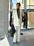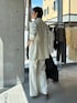 バランサールームのジャケットセットアップで。 オフホワイトを選べば上品で きちんとした印象だけでなく、華やかさも演出してくれる「白ジャケット」。 レフ板効果のあるジャケットを味方につけ、 着映えを実現しましょう! トップスはシルクリブの新色グレージュで柔らかさを残しながら異なる質感をミックスすることで着映えを実現したコーディネートに。 ・バランサールームシリーズ ニットなのに布帛のような生地の見た目なので、 とにかく着心地が◎✨ とても動きやすく、シワになりにくいのでお仕事や出張、ご旅行やお出かけと様々なシーンで活躍するアイテムです!