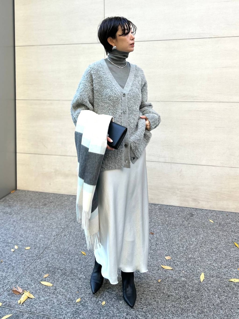 人気のペルシアシリーズから新色が入荷しました♪ 今回の新色カラートップグレーも素敵です♡ 冬の装いに静かで上品な明るさを出してくれるのではと思っています😌 秋が深まり、 レイヤードスタイリングを楽しめる季節になりましたね🍂 今回はグレーの濃淡で重ねたスタイリングをご提案いたします。 レイヤードする時に私が気にしている事は 素材の差を出すことです💡 ペルシアモールのふわふわ、 リベールサテンの艶、 それぞれの素材が重なると個性と洗練が生まれます。 ぜひいろいろなレイヤードを楽しんでください😊 instagramからもおすすめのアイテムをご紹介しております💡 フォローしてくださると励みになります😊 ↓