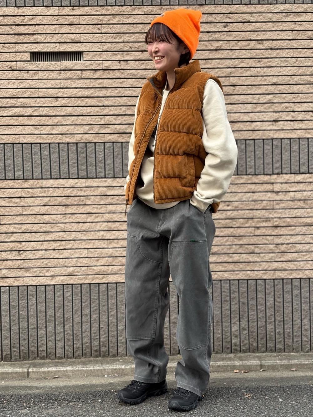 こんにちは! 本日は吉祥寺店より秋の新作のご紹介です!! メンズライクなスタイリングが好きな私に男性スタッフがコーディネートしてくれました!! メンズのスウェット、パンツも女子が着ると、いつもと少し違った表情に見えませんか?? ちなみにダウンベストはKID'Sの大き目サイズです。 ストリート色強めのちょっとヤンチャなコーディネートで心も男の子っぽくなったので今日はスケボーで帰ります!!