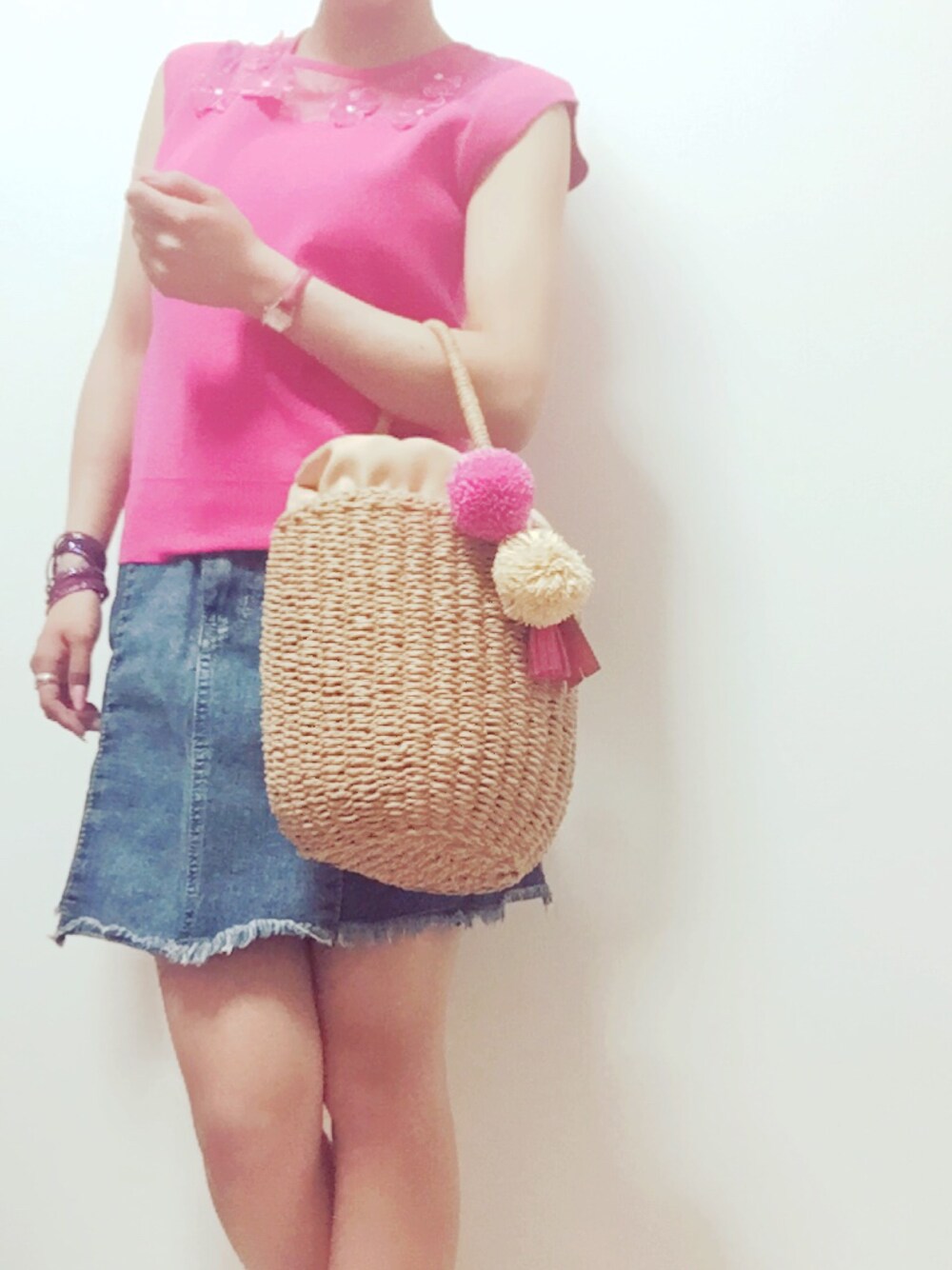Ayaka Onishiのかごバッグを使ったコーディネート