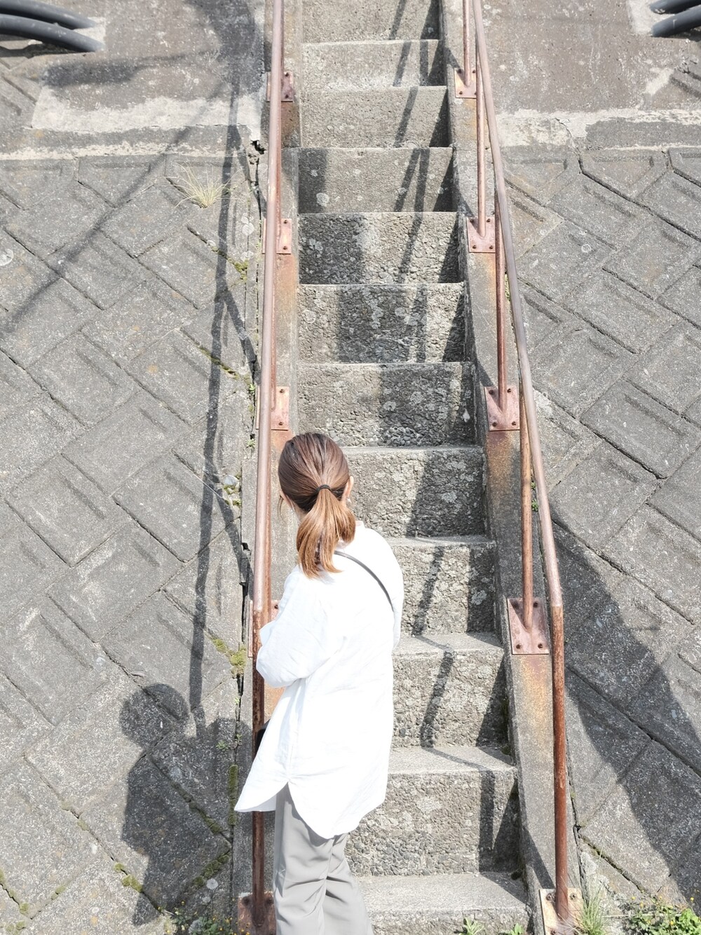 ホワイト系のシャツ/ブラウス、グリーン系のパンツを着用したレディースの春コーディネートの1枚目の写真