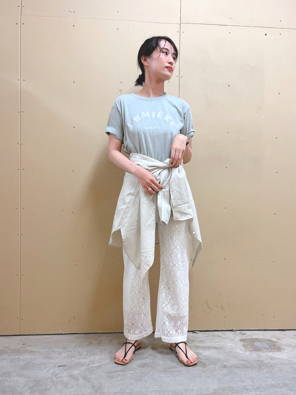 淡い色でまとめて涼しげに🌿 このレースパンツ可愛いです❤︎ ワンピースの下にレイヤードしても◎