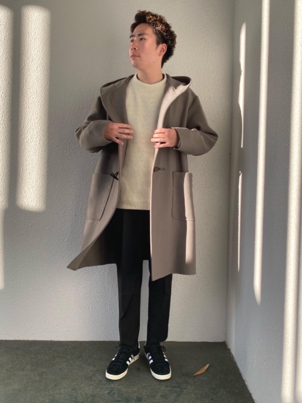 とても軽くルーズなサイズ感のダッフルコートはカジュアルなディティールです。トップス、パンツをクリーンなアイテム合わせがオススメです。