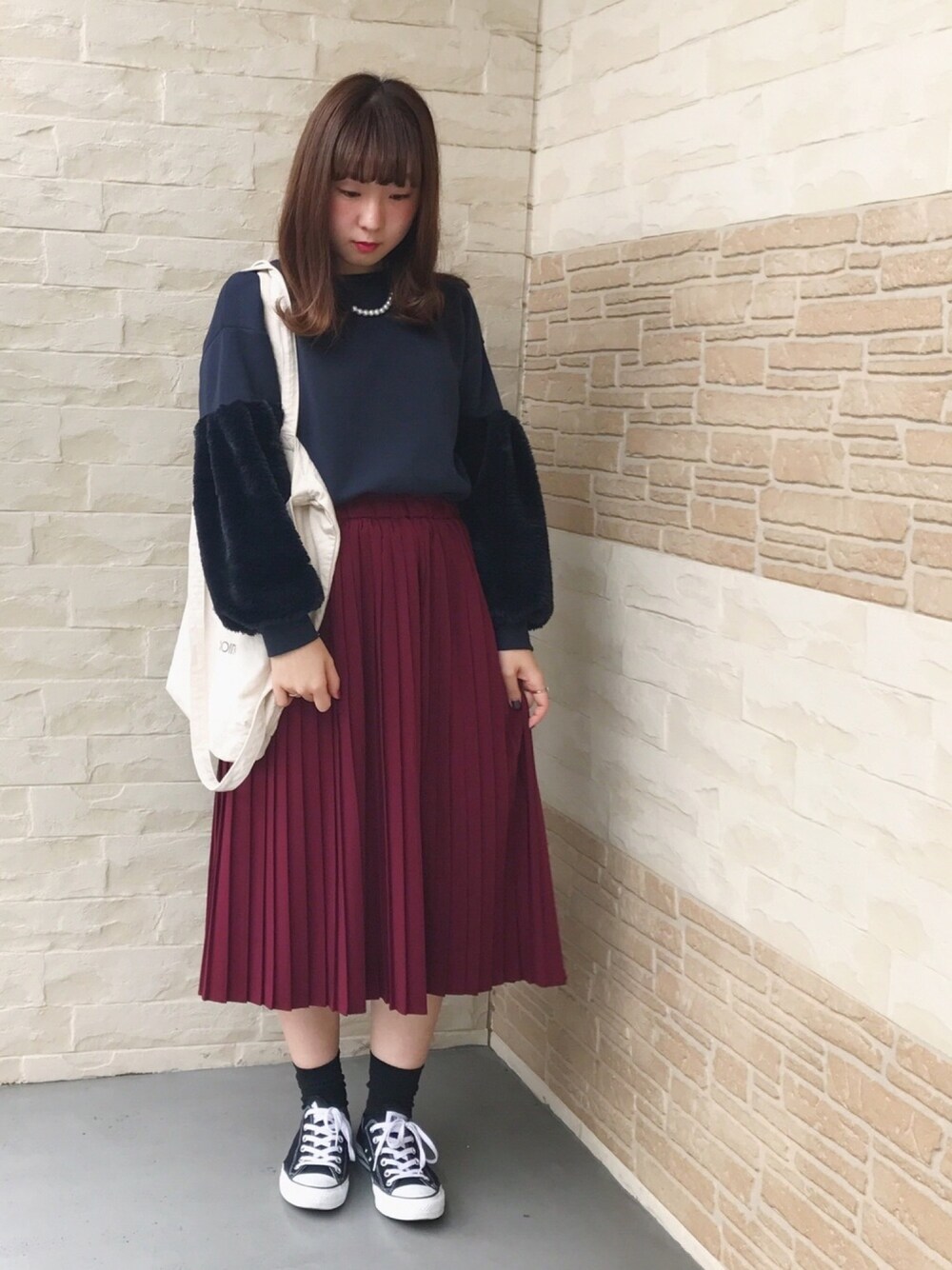 ○お袖ファー○ こんばんは🌆 かわいいかわいいお袖にファーがついてるトップスの紹介です✨✨流行っていてもふもふしていて可愛いですよね! 裏起毛があり着ると、とても暖かいです❣️❣️最近は、とても寒くなってるので1枚あると困った時にパッと着ていただけますよ。 ボルドーのプリーツスカート、実は1着持ってるんです。。。すごく悩みましたが、 ツイル生地で持ってないのでつい購入してしまいました!!! 是非お店てお待ちしてます!