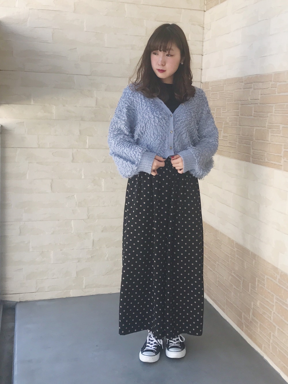 ○ループカーディガン○ おはようございます🌞 今日は、ループカーディガンを使ったコーデです! 黒のプルオーバーとドットガウチョパンツと合わせてサックスブルーをメンイにしてます✨ ドットガウチョパンツは、人気のベージュのドットなのでナチュラルな雰囲気を出してくれますよ💓 ナチュラルお好きな方是非お手にとってみてください🙆💕