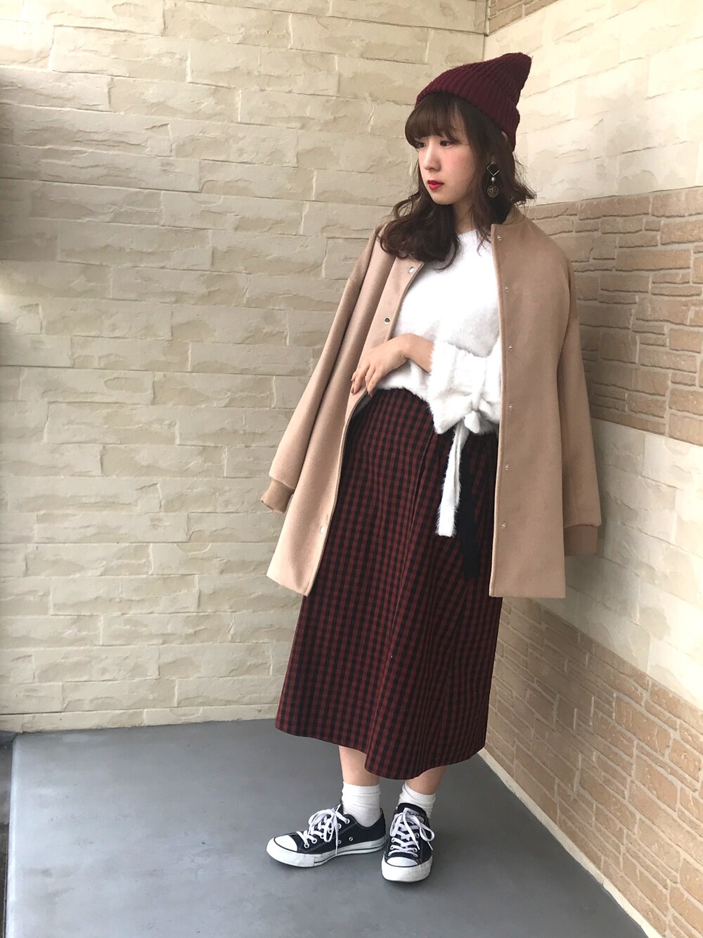 ○ ロングスタジャン ○ おはようございます☀ 2連続投稿です🤳😵 寒いですね… この間あげたスタジャンは甘いコーデだったので、大人っぽいコーデで合わせました。 今は、スタジャンが4990円でとてもお安いので買いやすく使いやすいですよ💓 ベージュ持ってない方はぜひ買ってみてください! お近くのイーハイフンのご来店もお待ちしております。