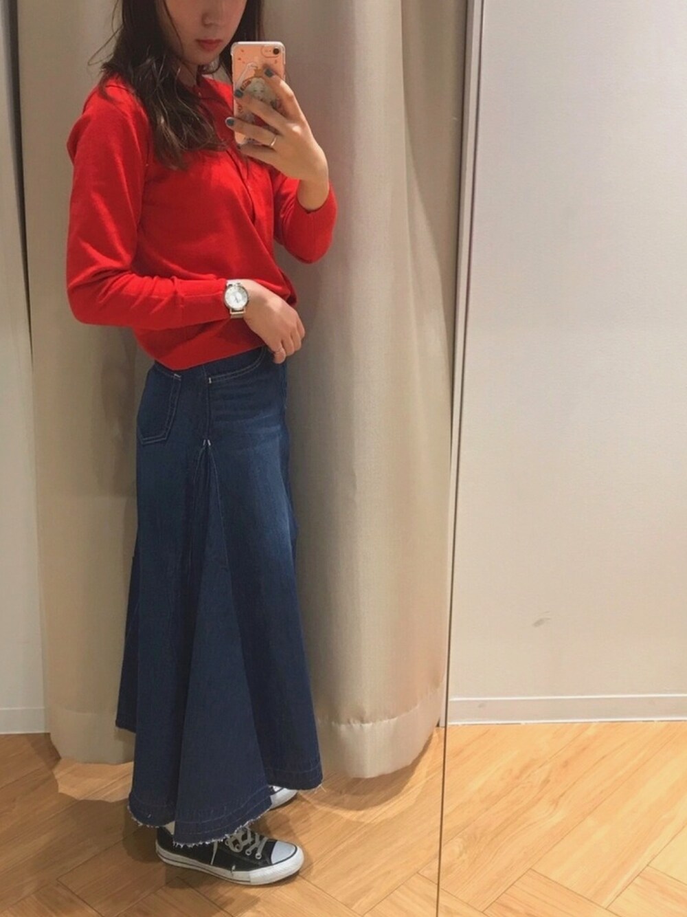○ 春コーデ ○ おはようございます! 昨日載せたカーディガンの色違いのコーデです! アメホリと言ったらデニム! パンツが多いですがスカートもあるので合わせてます💓💓 横にフレアがあるので歩く時のシルエットがとても綺麗ですよ✨ ぜひお試しください😊💕