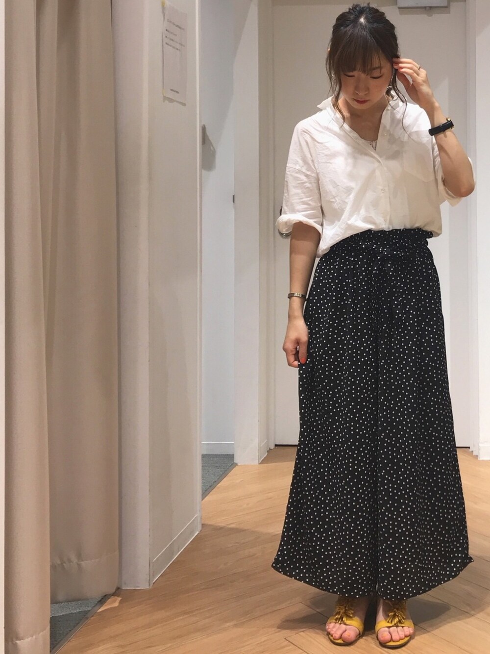一昨日 の出勤コーデです! トップスとボトムスが無彩色同士なので足元に色を入れてます💓 お店では半袖ビックシャツが大人気で完売してしまってるくらいです! ぜひお試しください!!