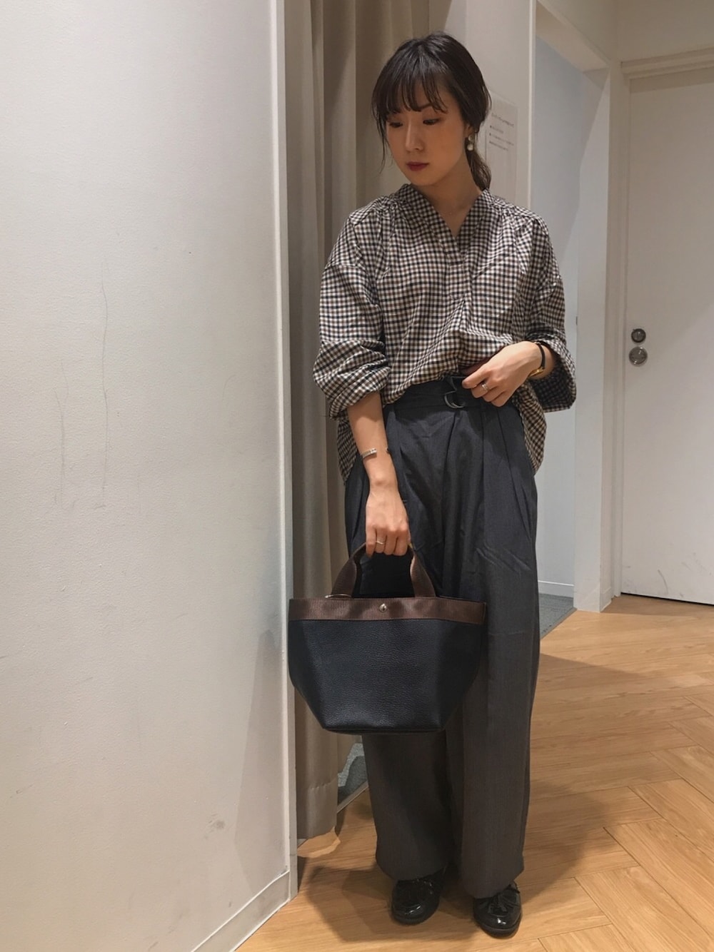 REINAのシャツ/ブラウス「Vネックスキッパーギャザーブラウス」を使ったコーディネート