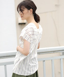 いつもご覧頂きありがとうございます! ベージュストライプブラウス×ブルー 足ともスニーカーでカジュアルに✨