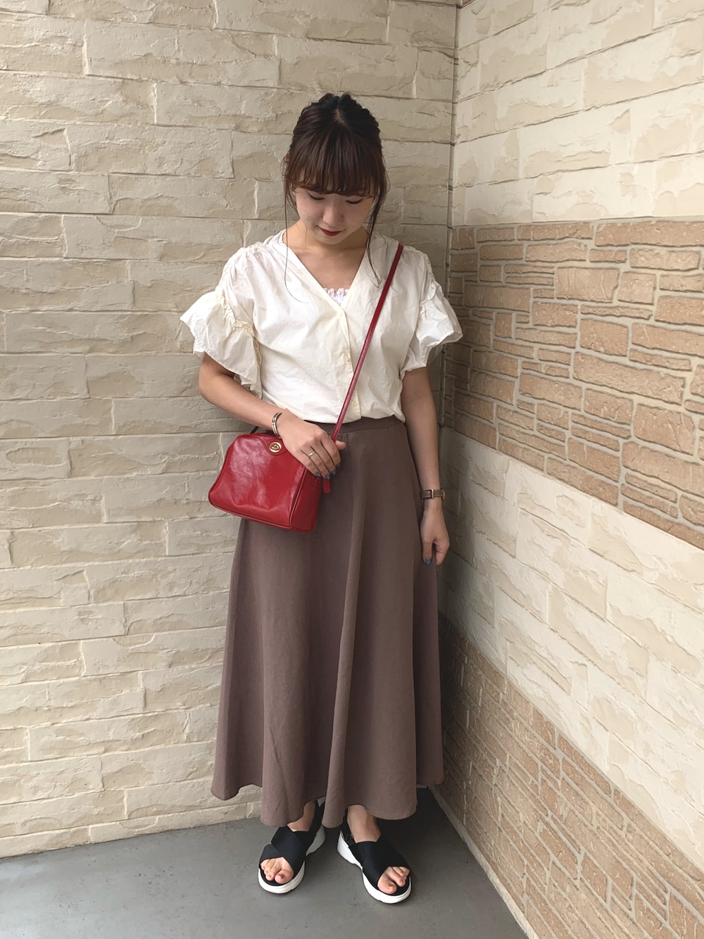 いつもご覧頂きありがとうございます! またまた休日コーデです❤︎❤︎ 去年買ったブラウスにアメホリのポコポコスカートを合わせて綺麗めカジュアルコーデです!
