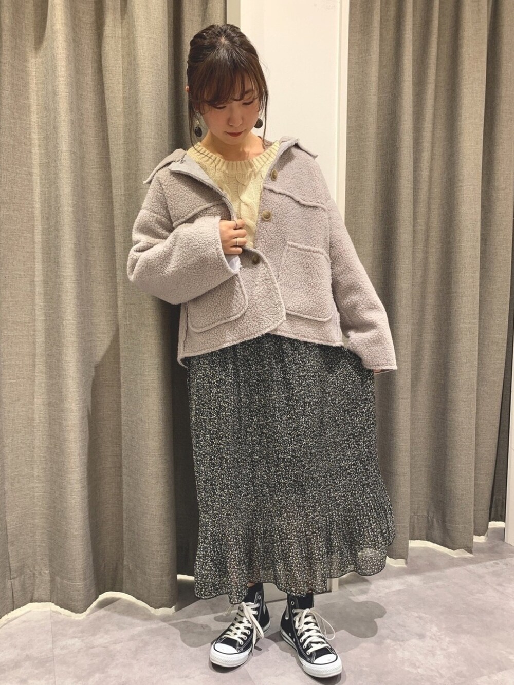 いつもご覧いただきありがとうございます!! 可愛いアウターコーデです❤︎ 前にあげたコーデのグレーアウターバージョンです!今回は、花柄スカートで女性らしく🎶