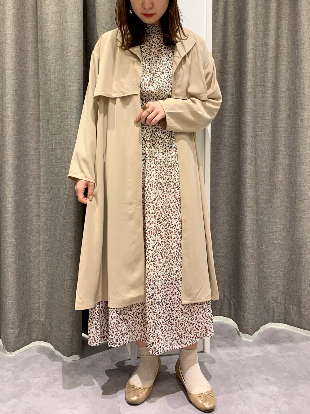 REINAのワンピース/ドレス「花柄ハイネックワンピース」を使ったコーディネート