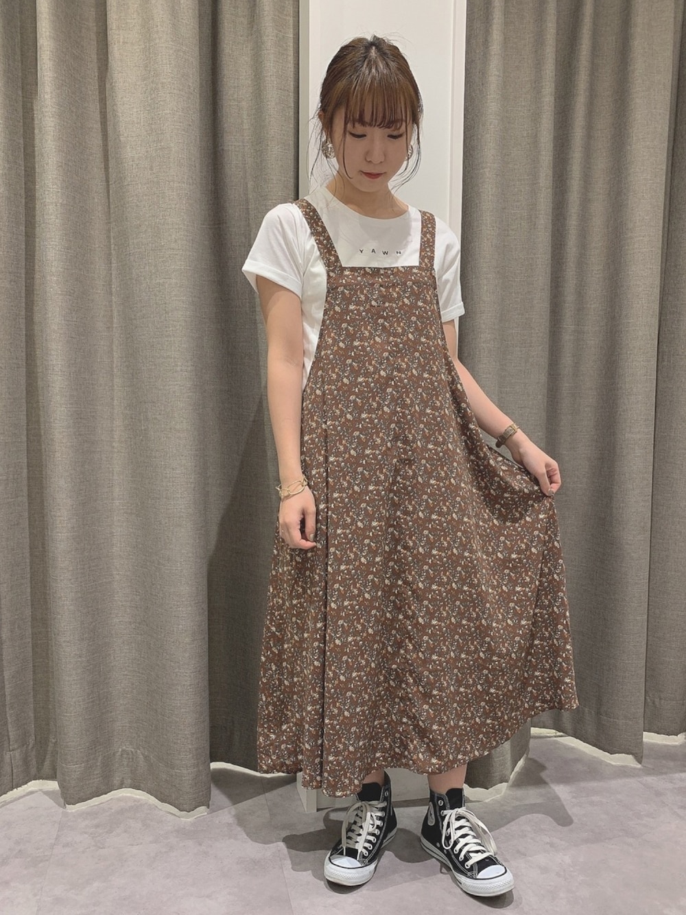 いつもご覧頂きありがとうございます! 花柄がおしゃれなワンピースコーデです❤︎ トップスは、バックプリントが可愛い猫ちゃんTシャツです😍