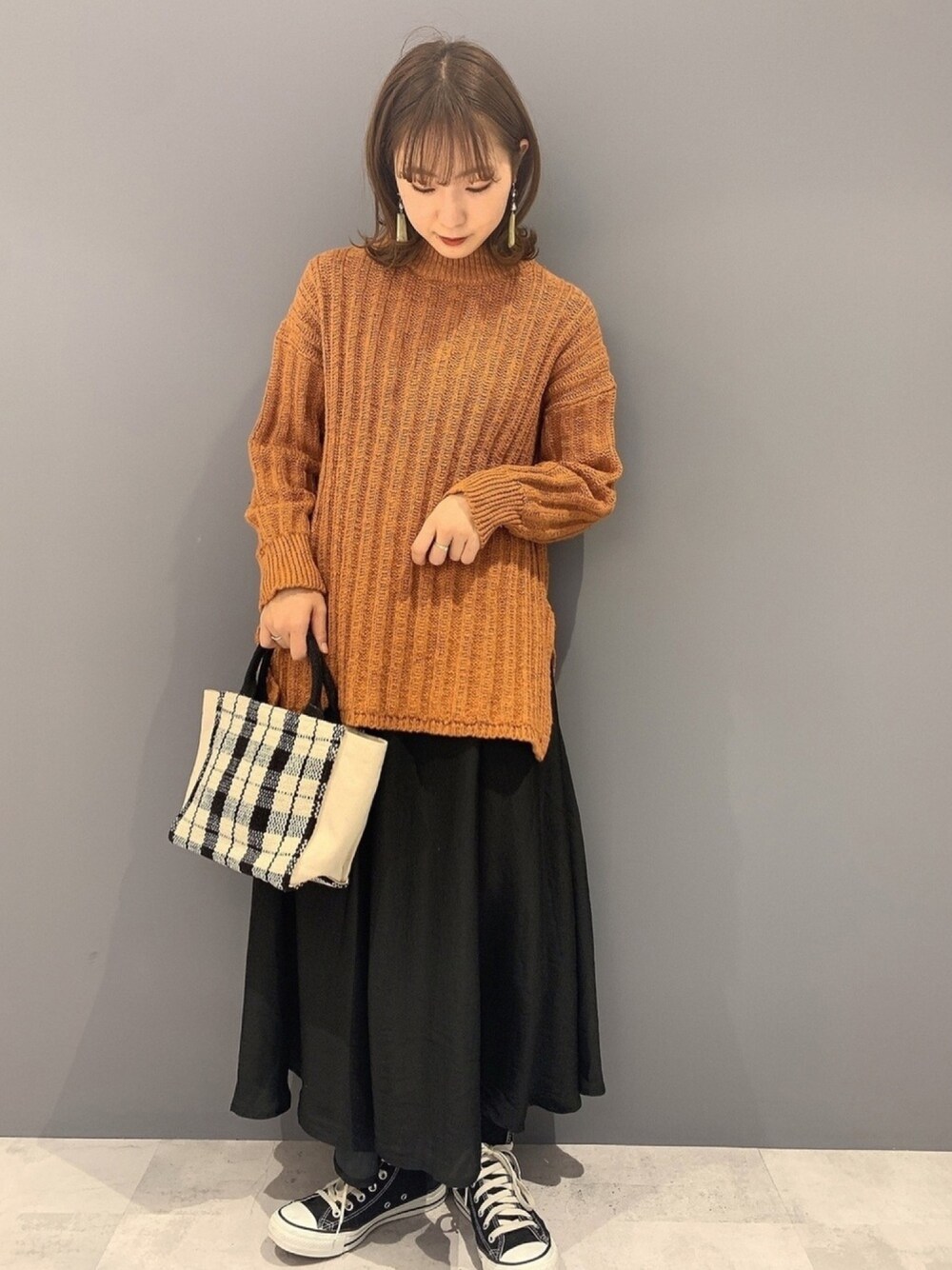 いつもご覧いただきありがとうございます! オレンジ×ブラックコーデです。 ワンポイントにチェックアイテムを✨