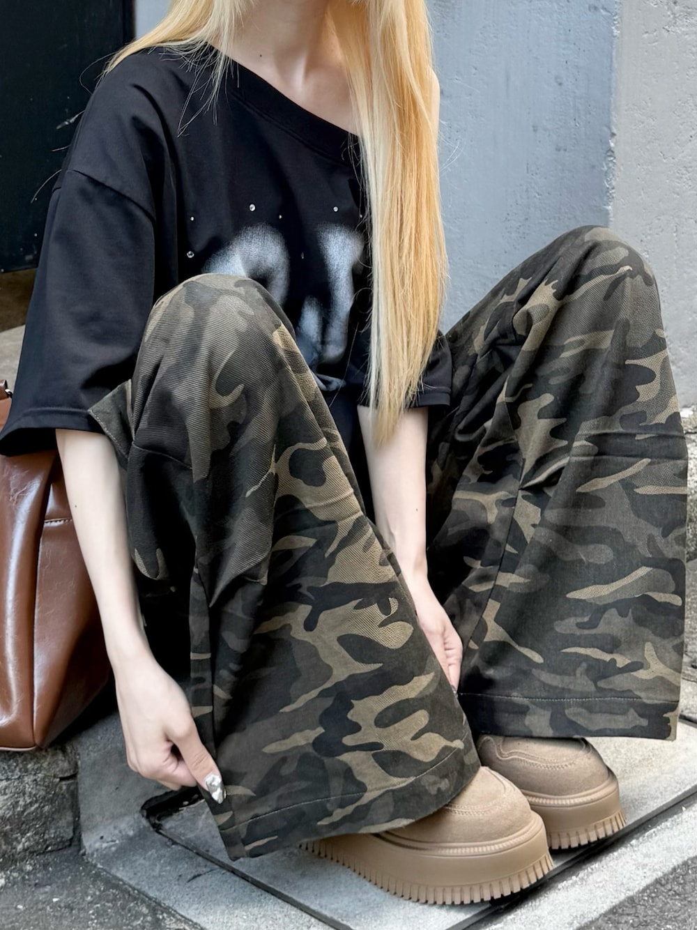 流行りのカモフラパンツと ワンショルTの相性抜群◎