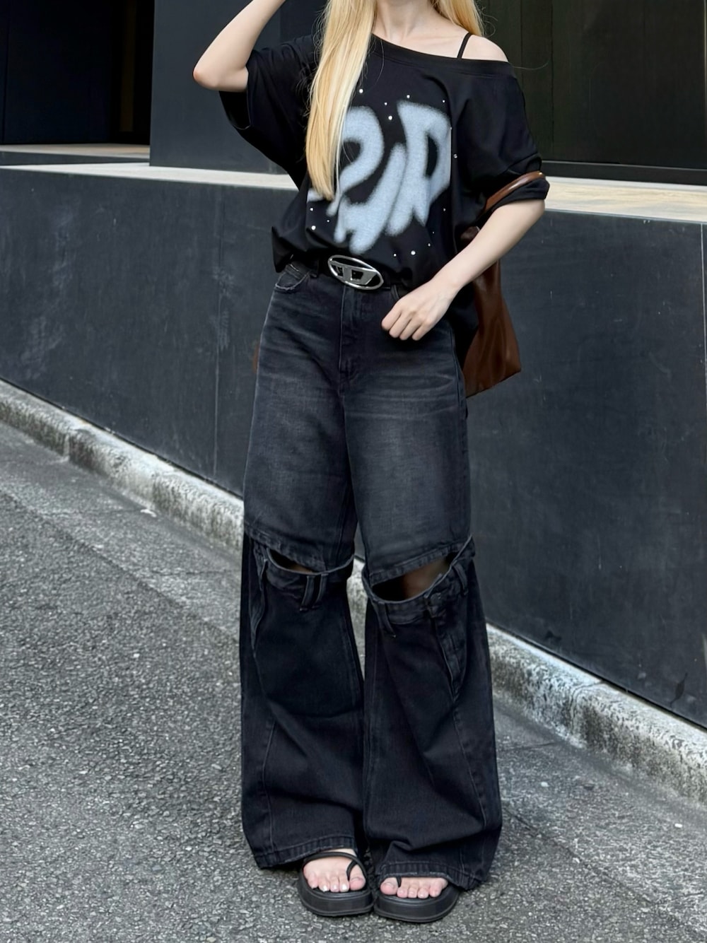オールブラックに 秋カラーのブラウンを差して🍂