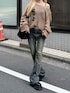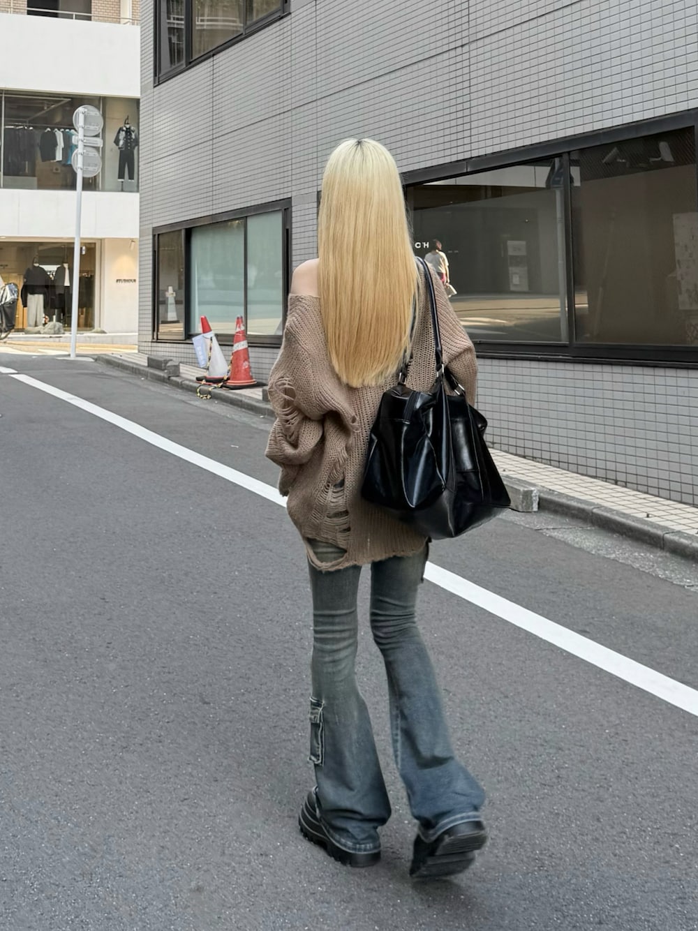 Y2Kっぽいベージュのダメージニットに フレアパンツを合わせて𓂃꙳⋆𖤐