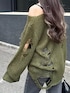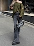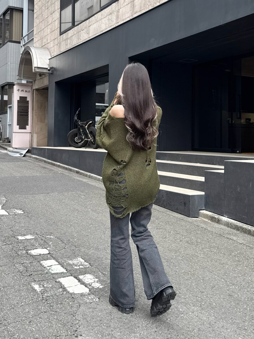 ゆったりめのダメージニットに フレアデニム合わせでスタイルup𖤐⸒⸒