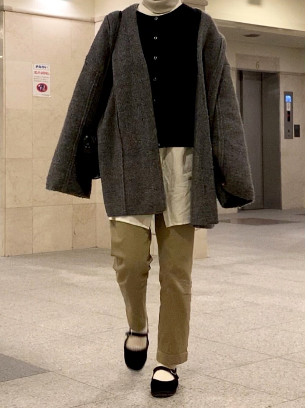 ひなのノーカラーコート「オーバーサイズニットコート」を使ったコーディネート