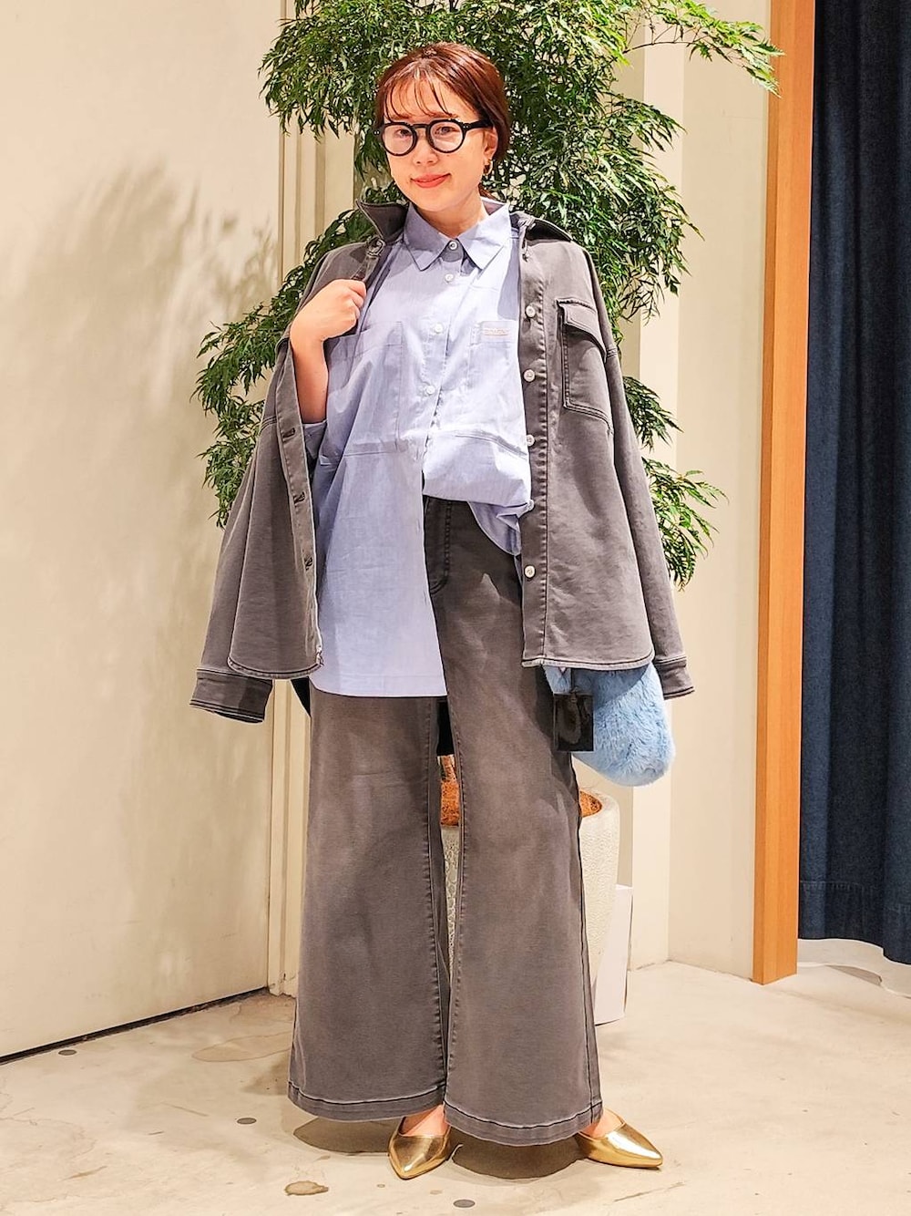 アスレチックデニムのセットアップ着てみました♡ 着心地と形最高!の一言です😩💞💞 ジャケット、ボトム共に着心地はスウェット。 パンツのシルエットは細見えのデニムです! 毎日履けるようなデニム腰回りも座った感じも全部柔らかいです!なのにシルエットは崩れず美✨️ 普段ベイフローではMサイズを着ますがこちらはSで着丈もサイズもぴったりでした😚 シャツもブルーの色味がおしゃれ。 薄手なので重ね着も楽しめます💙
