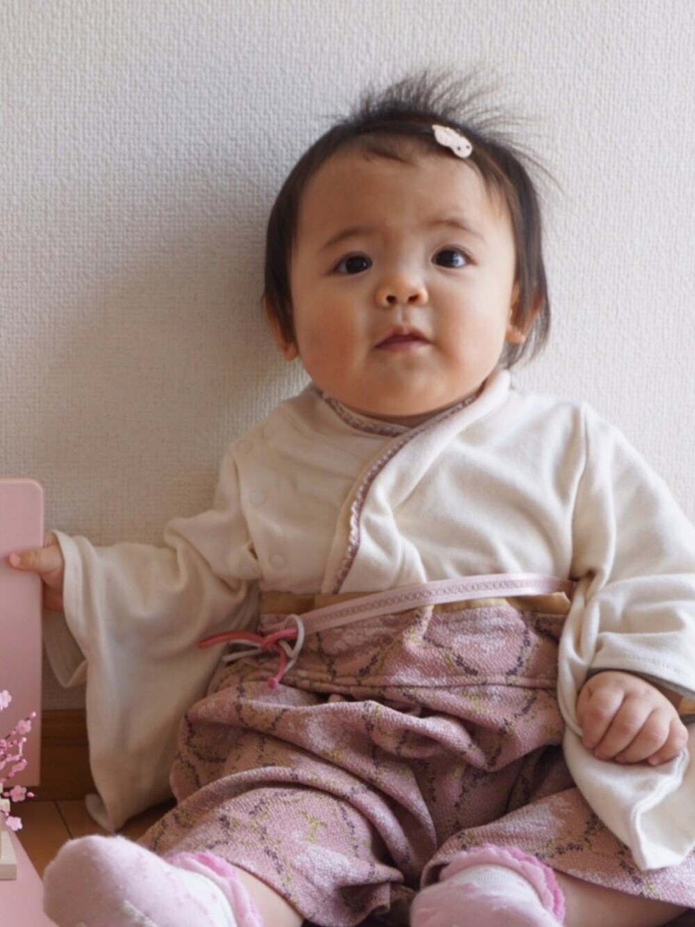 ゆめ海の着物「ダマスク柄袴風カバーオール【女の子用】ベビーサイズ お正月」を使ったコーディネート