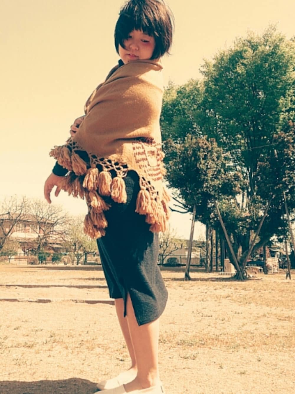 イエロー系のストール/ショールを着用したレディースの春コーディネートの1枚目の写真