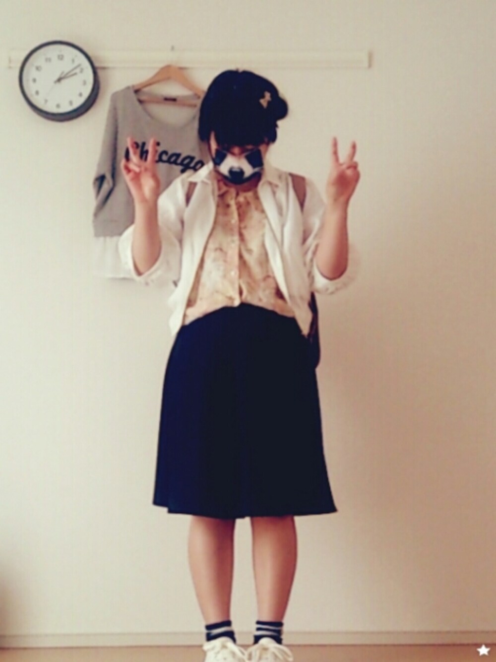 白のショート丈の薄手アウター使えます。 鎌倉行った時に買った犬になれるマスクとともに。