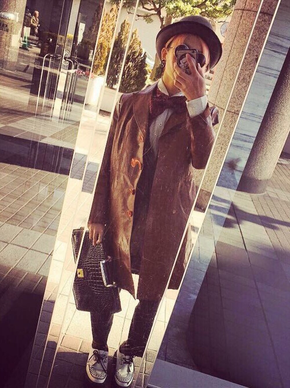 普通のネクタイを蝶ネクタイの形に結びました。ちょっと前のコーデなのでちょっと厚着です笑