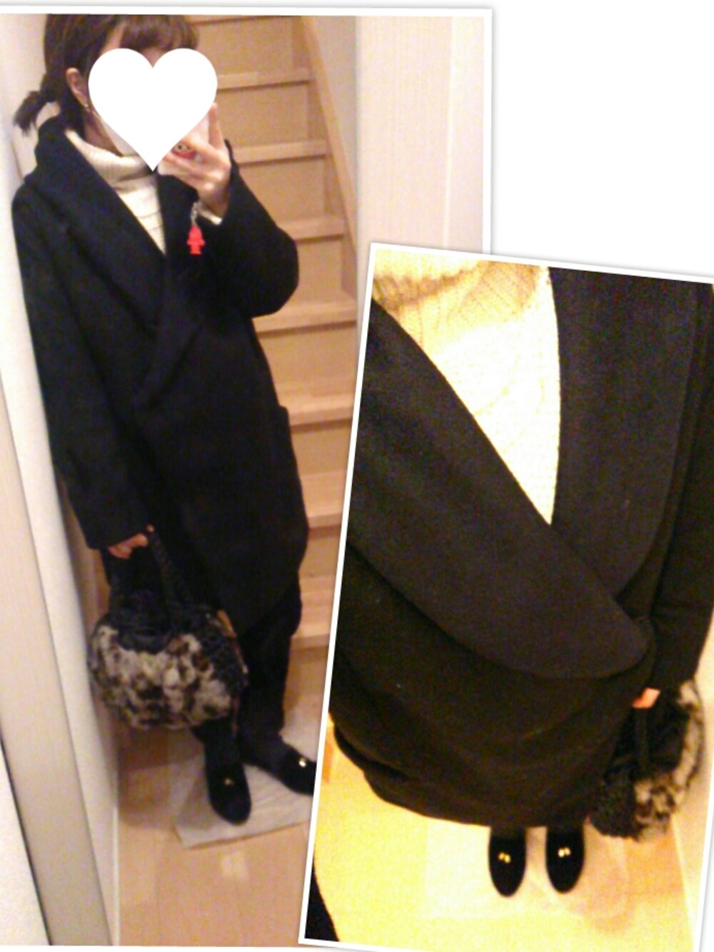 新しいコート☆ 妊婦でも後ろを調整したら、余裕で前が 閉めれる♪ フードはおって、まるめたら雰囲気がかわる~ 暖かいし優秀 (*^^*) shoesもsaleで購入♪