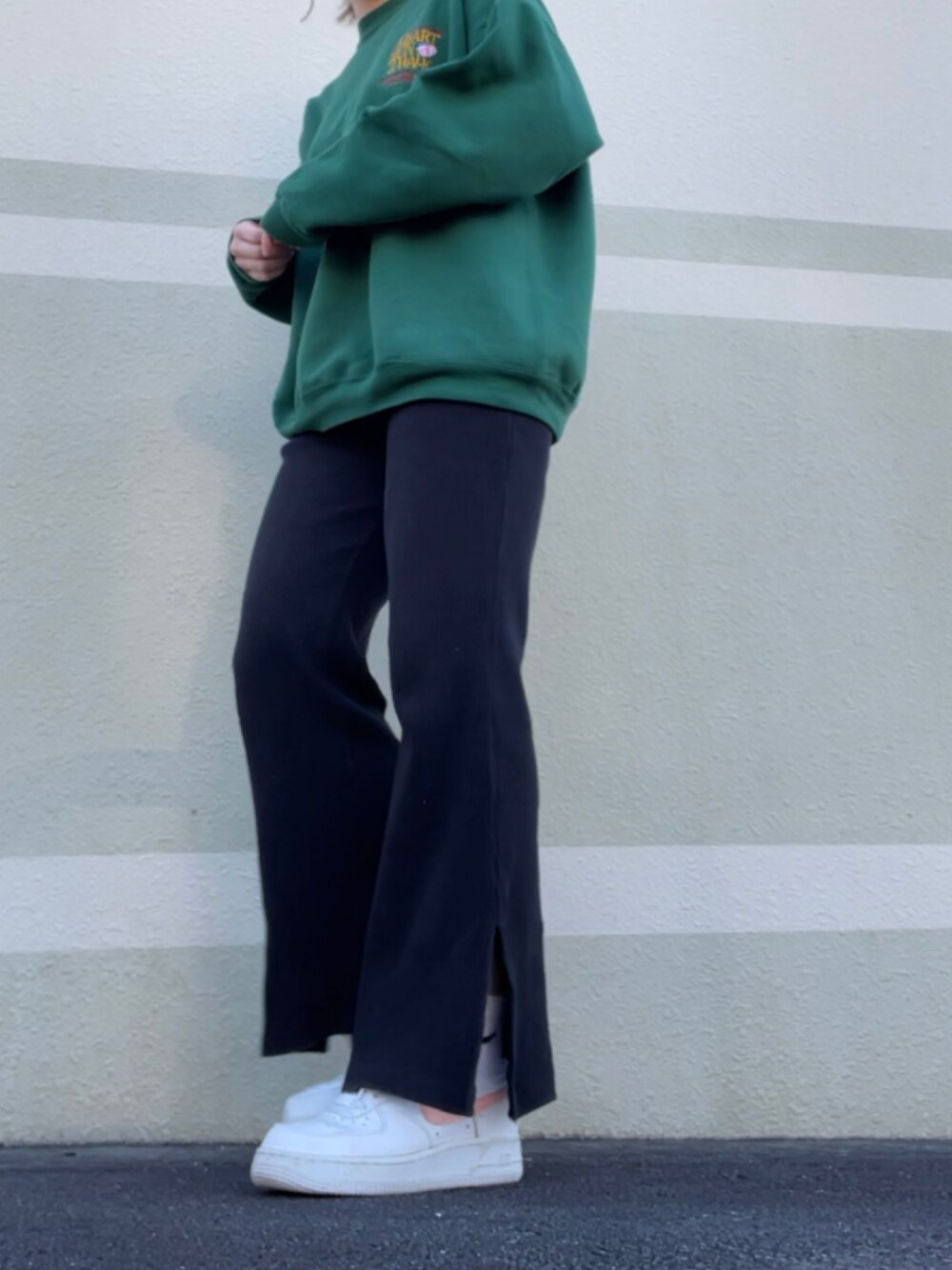 ご覧いただきありがとうございます(^^)v 🟢⚫️⚪️ あえて丈間のあるソックスで足元NIKE揃え 今年緑流行ってるみたいだから去年買ったこのスウェット今年もたくさん着れそうで結構嬉しいです、、