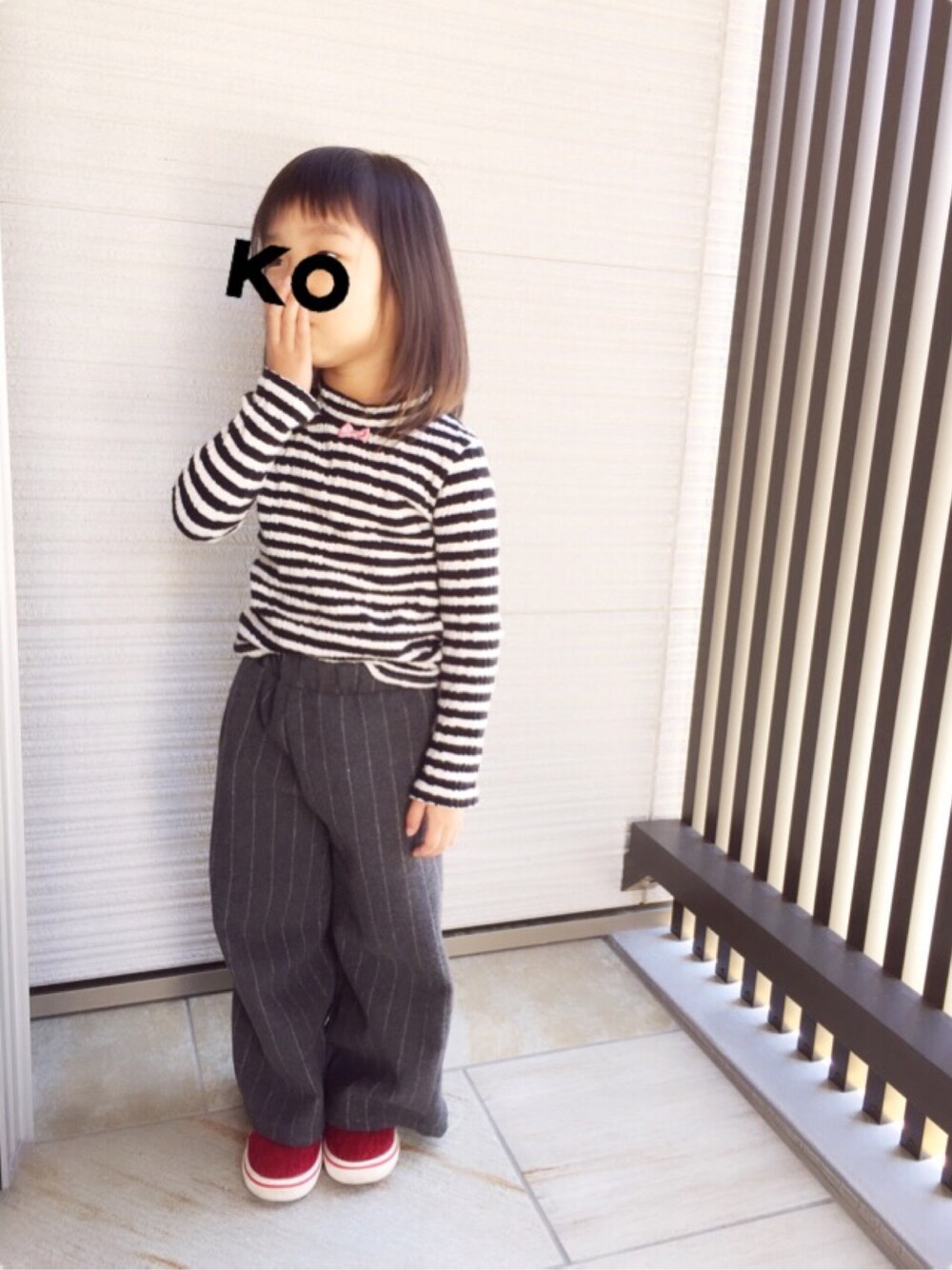 前のコーデにいいねsave有難いです! ありがとうございます♡ 今回はワイドパンツデビューの娘ちゃん😍 楽なのか嫌がらず着てくれました! 今日は親子で私もワイドパンツでお出かけです♡