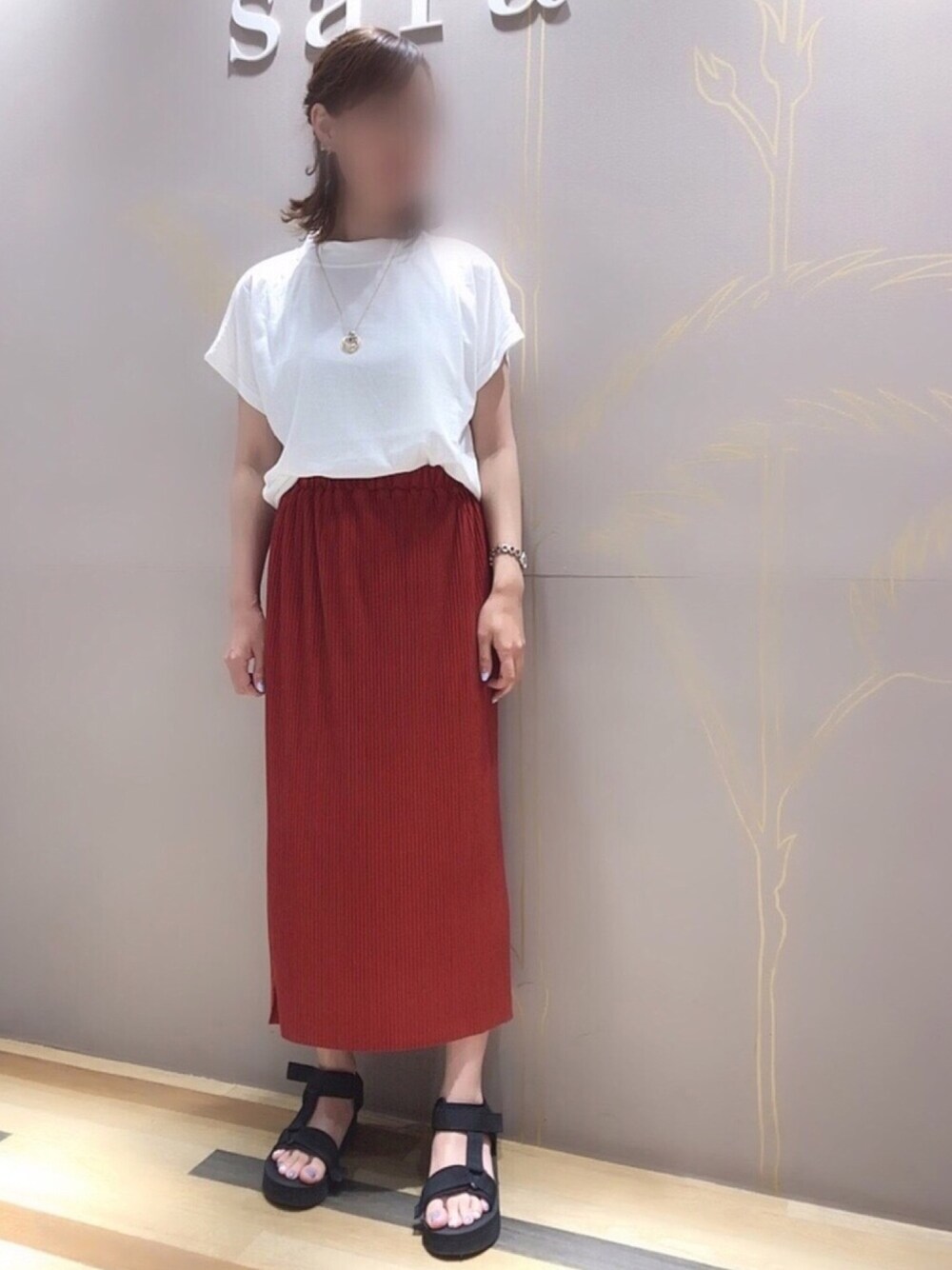 おはようございます😃 ご覧頂きありがとうございます🙇♀️ Iラインのオレンジ🧡色のスカート^_^ 赤に近いかな?? プリーツも入っておりスッキリした印象^_^ サイドスリットも深めです^o^