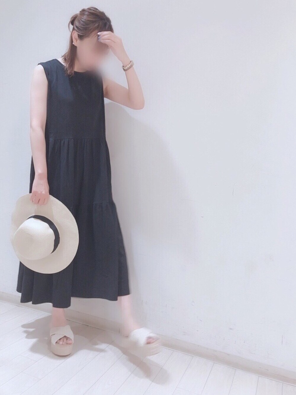 ご覧頂きありがとうございます😆 久々に暑くて夏🍹を感じます^_^ 暑い日には一枚でサラリと ノースリーブのワンピースが快適🎐 ティアードになっていますが、 広がらないシルエットも素敵です♡ いいねやsave、フォローありがとうございます😊