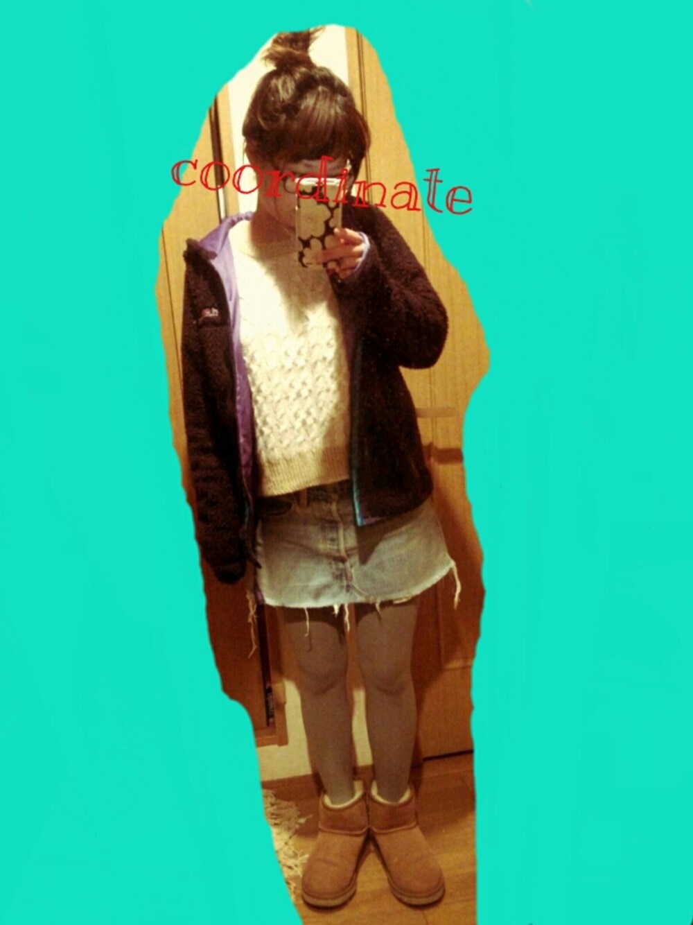 アウター:xgirl ニット:アトリエドゥサボン スカート:used 靴:UGG タイツ:靴下屋
