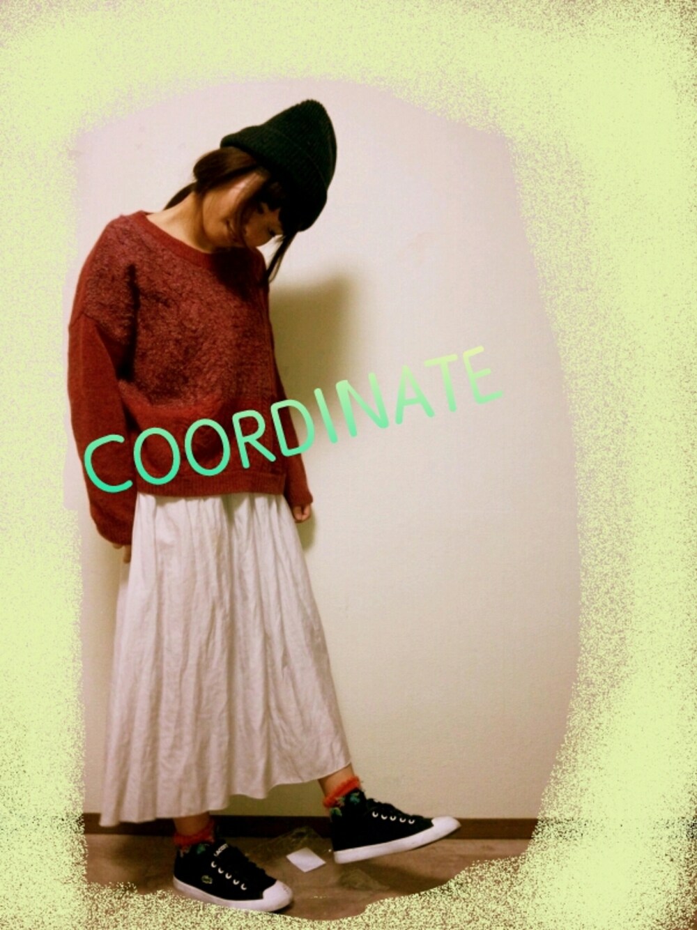 ニット:bulle de savon ワンピース:gelato pique 靴下:靴下屋 ニット帽:TOP SHOP
