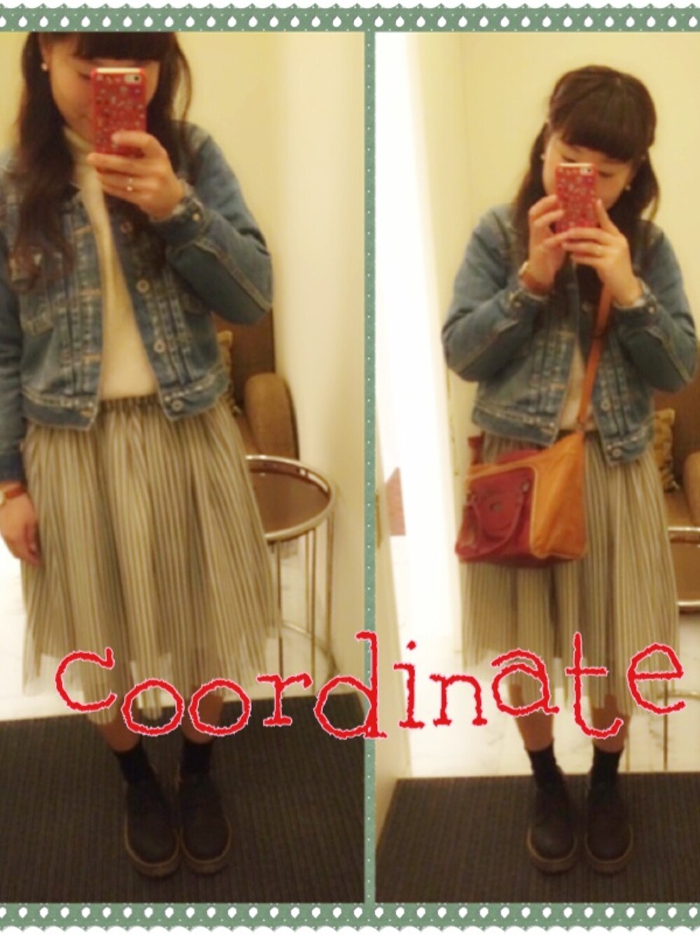 今日はとっても暖かいですねー☀︎ Gジャン:ナノユニバース トレーナー:Crisp スカート:PAR ICI 靴:DHOLIC