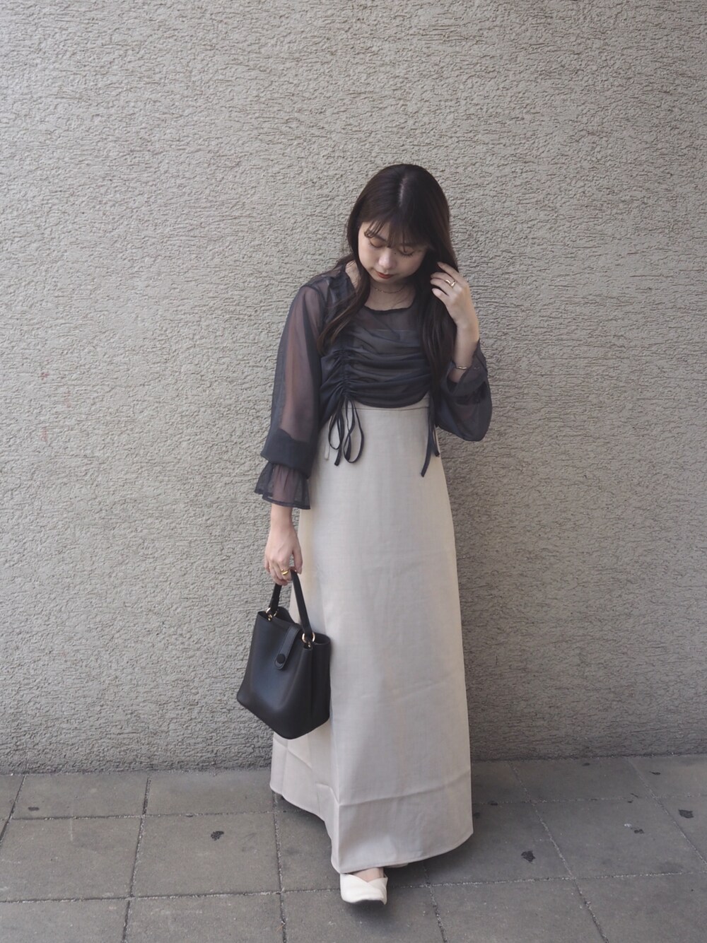 キャミワンピにグレーのシアートップスを 合わせて秋っぽさをプラス🍂 夏のアイテムを秋コーデに💭