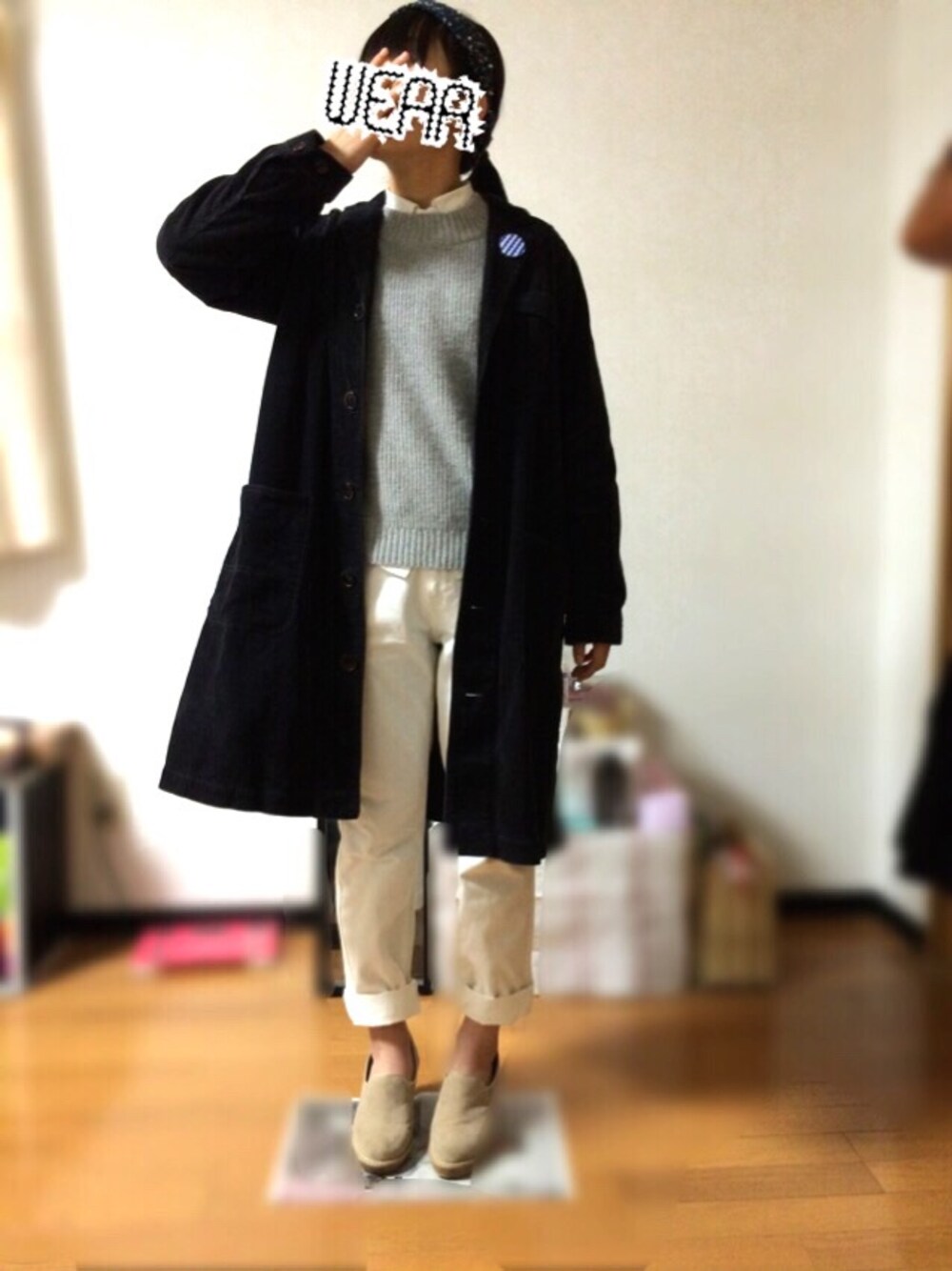 おのパンツ「20/-ツイル ボーイフレンドスリムパンツ」を使ったコーディネート