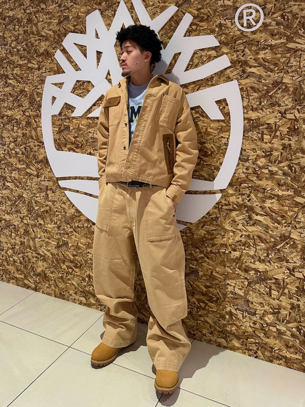 着用スタッフ 年齢:20代後半 身長:175cm 【普段サイズ】 トップス:M〜XLサイズ アウター:M〜XLサイズ パンツ:W34~W36 靴:28cm(スニーカー) 【着用サイズ・サイズ感】 アウター:Lサイズ(普通) Tシャツ:Mサイズ(普通) パンツ:34インチ(やや大きめ) シューズ:27cm(やや大きめ) 【スタイリングポイント】 TDCからダック地のセットアップを着用し、男クサいスタイルに。チョアジャケットは幅広短丈、ダックパンツはワイドストレートなシルエットでAラインのシルエットを作りやすいセットアップ。イエローブーツと合わせてコテコテのワークスタイルの完成です。 インナーには春らしいカラーのTIMBSロゴTをチョイス。フロントのロゴが存在感抜群です。 【アウター品番】0YH3C-EH3 【トップス品番】0YH3X-AI0 【パンツ品番】0YH3H-EH3 【シューズ品番】10061 Timberland BoutiqueTokyo(代官山) Timberland伊勢丹 Timberland渋谷パルコ Timberlandなんばパークス Timberland ルクアイーレ Timberland 名古屋パルコ Timberland キャナルシティ博多 Timberland.co.jpにて取り扱い中