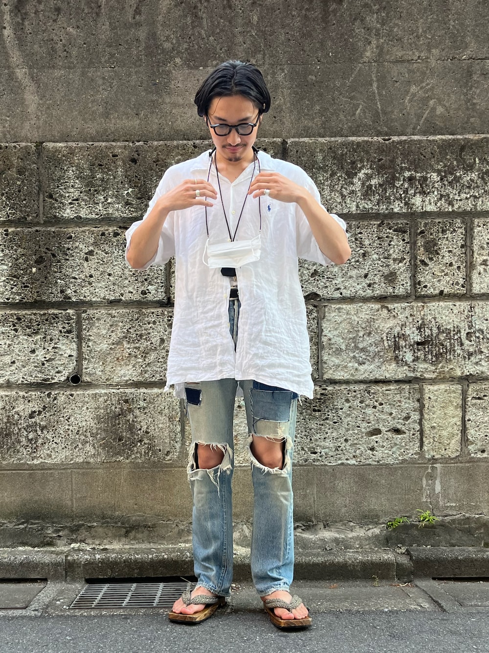 66前期のボロボロリーバイスは余ったデニムの切れ端を適当に貼り付けたお気に入り。シンプルに白シャツがいっちゃんええと思うんよなー