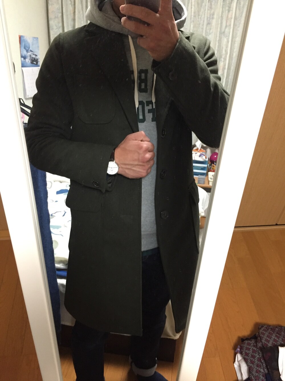 けんぼーのチェスターコートを使ったコーディネート