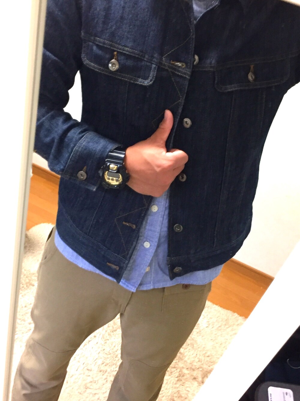 ジージャン×チノパン。 今日は寒いな〜
