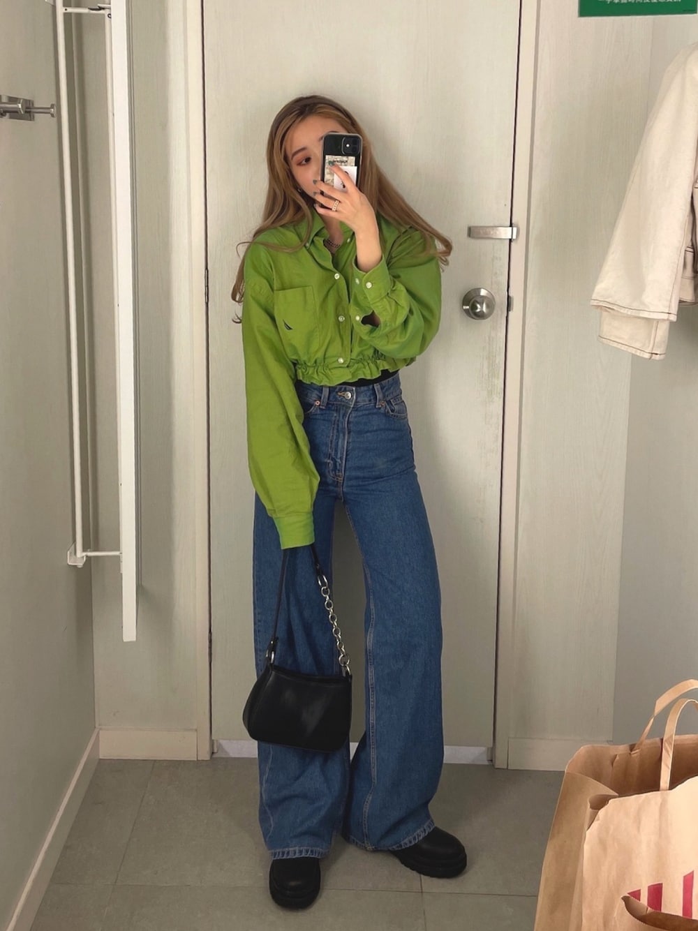 緑色に惹かれてバザーでゲットした古着のシャツ👔👒💚 デニムとの相性も抜群でお気に入り⌄̈⃝ 可愛すぎて同じ形のPOLOのチェックシャツも買った🛍 Instagram | __hoshi.c___